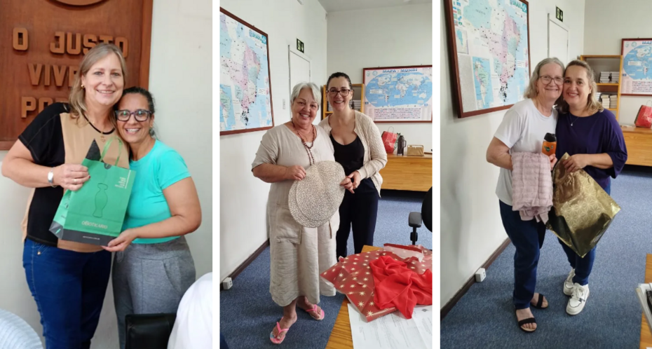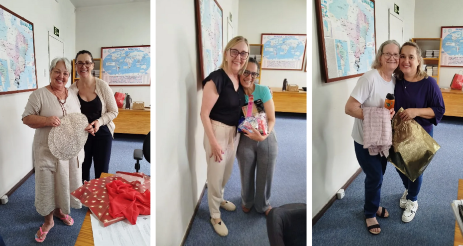 Para finalizar o ano de atividades, a Diretoria Nacional encerrou o encontro com um amigo secreto entre os participantes. A confraternização serviu para reforçar a união e a gratidão a Deus pelas bênçãos derramadas sobre o trabalho das servas ao longo do ano.